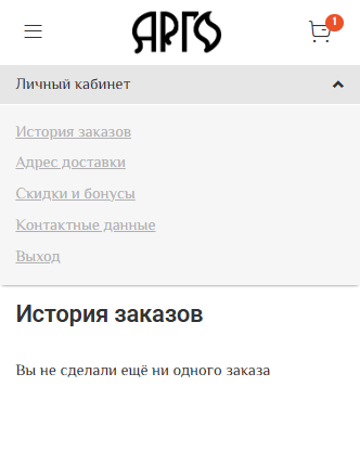 В мобильной версии необходимо нажать на галочку справа от надписи "Личный кабинет" для доступа к разделу "Адрес доставки"